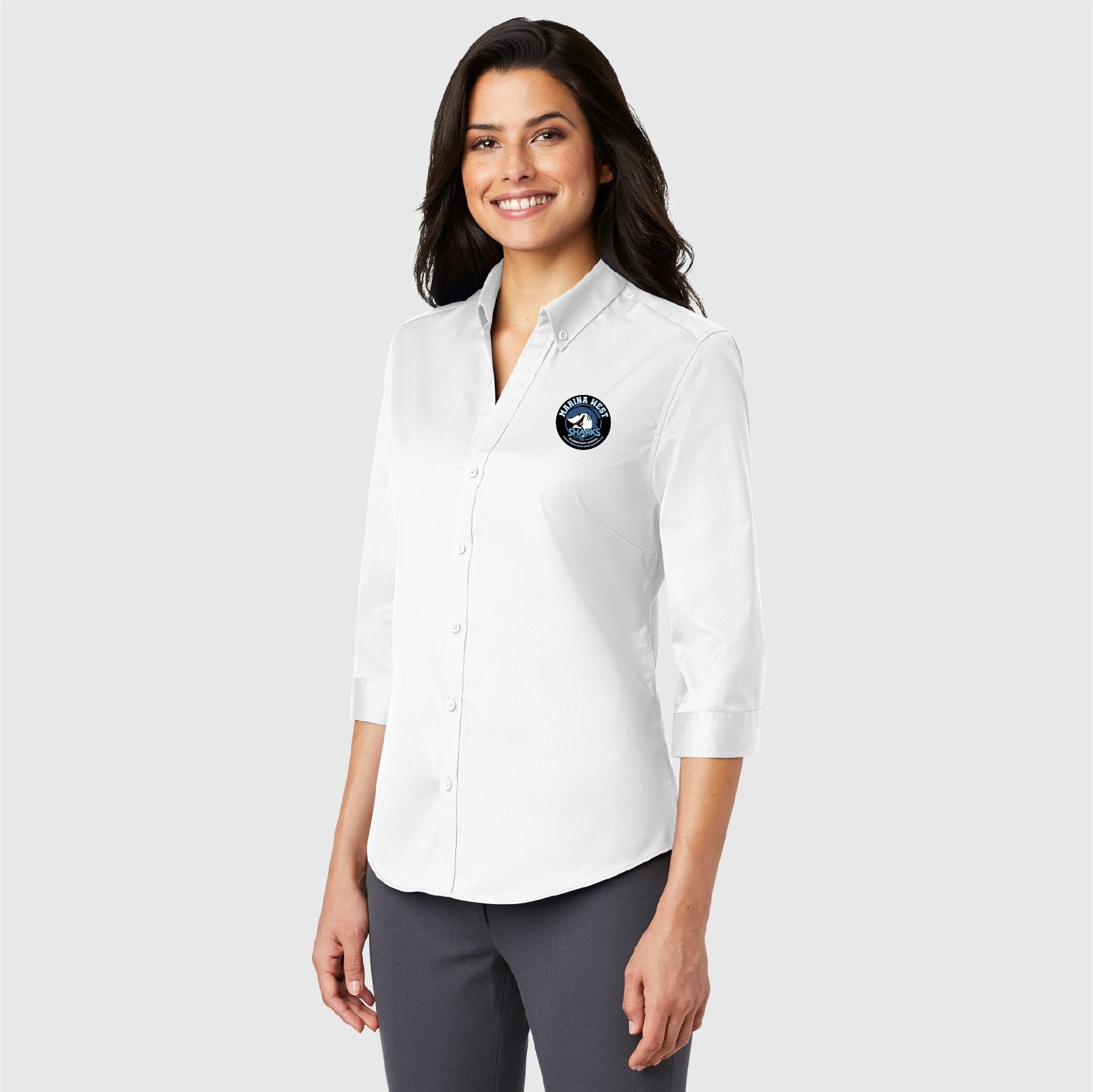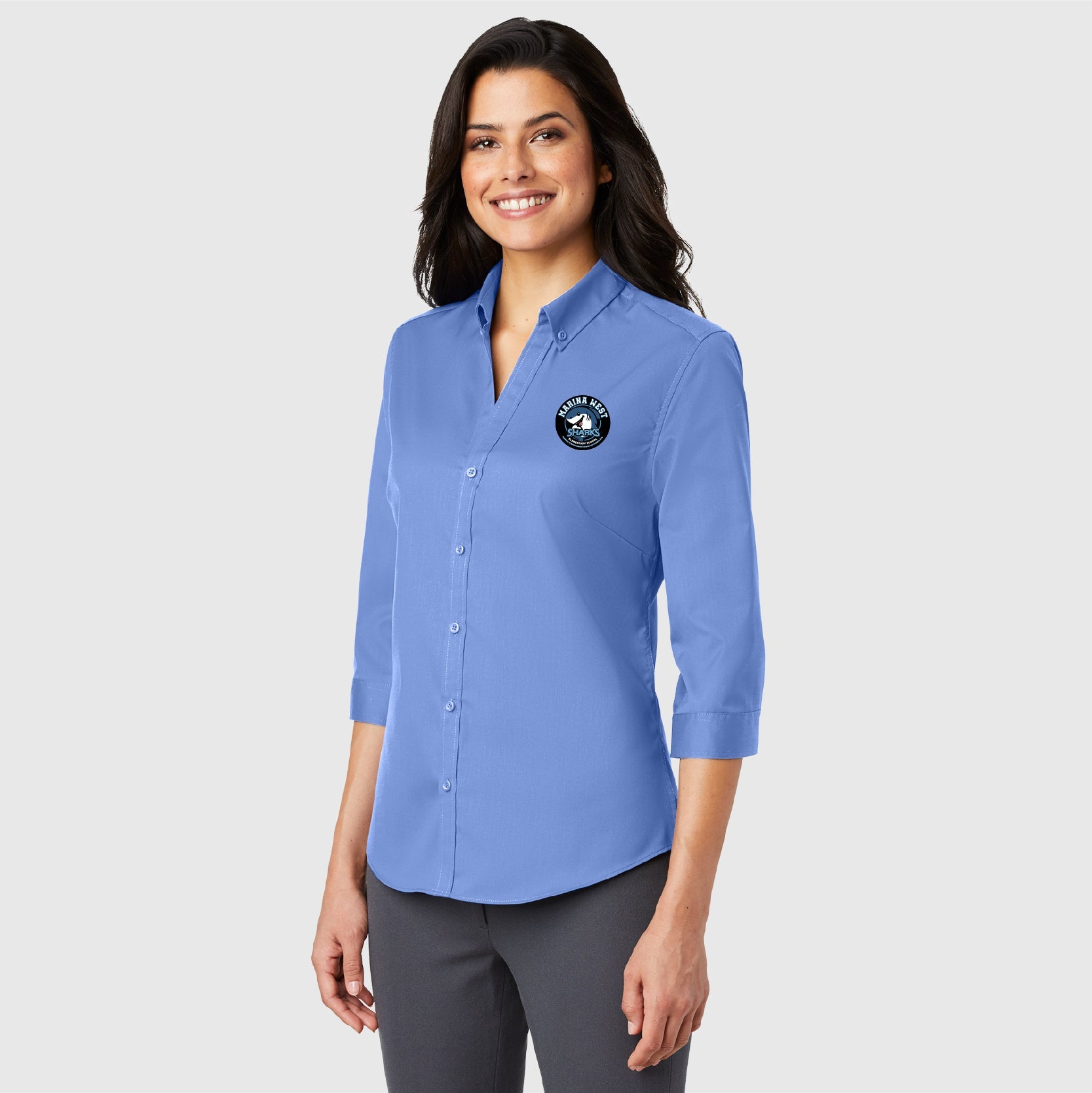 Women's Port Authority 3/4-Sleeve SuperPro Twill Shirt - Embroidered Logo